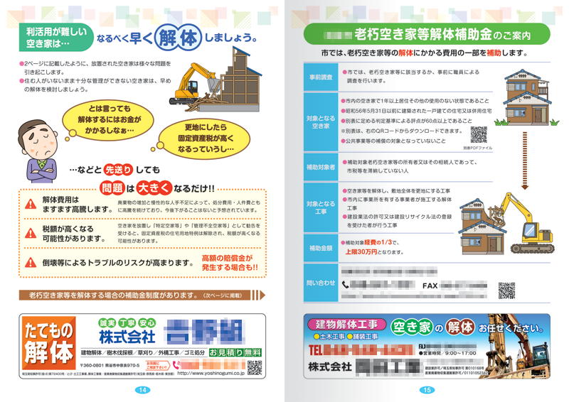 - 現在空き家を所有している人や相続した家が空き家になってしまう可能性のある人に向けて、放置空き家の問題点、所有者が被る可能性のある社会的・経済的損失などについての情報を掲載した啓発冊子です。
