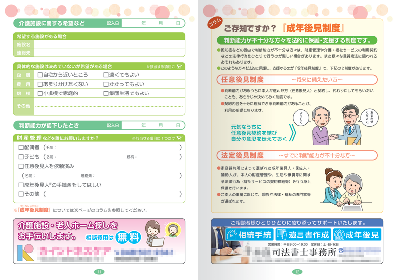 - 家や建物の相続等について書き残す記入欄もあり、不動産関連のエンディングノートとしてもご活用いただけます。